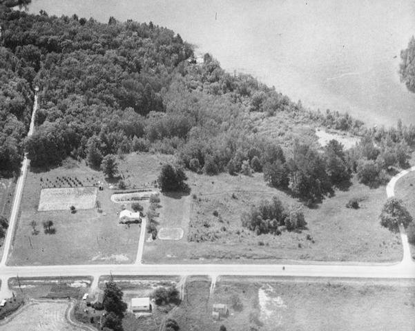 Locations: Camp Mahn Go Tah See Mi Notes: M-65 runs parallel to the bottom of the picture, with the camp road turning off to the left oat the far right side. The Roberts home as it was before 1965 is in the foreground, on the west side of M-65.