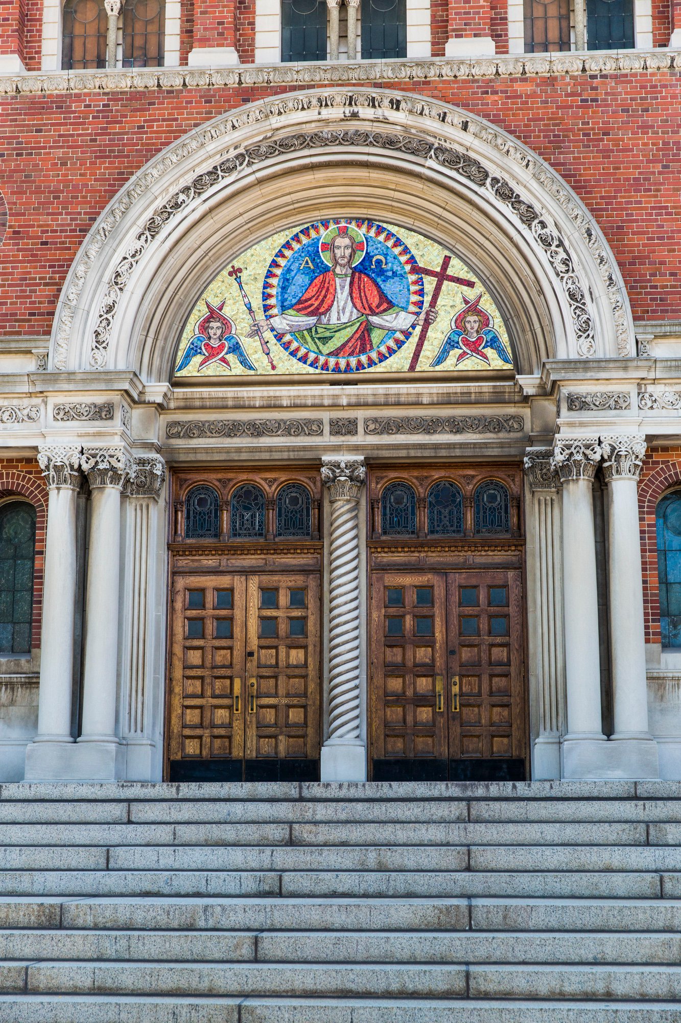 10 Construction started on the permanent location of St. Agnes, with the school built in 1916, and the convent a year later. After considering several possibilities for a sanctuary, the parish chose a gothic design by the firm of Van Leyen, Schilling, Keough, and Reynolds, and started work in 1922. The cornerstone of the church was laid in a ceremony on September 10 by Bishop Michael James Gallagher; construction of the 1,500 seat sanctuary was completed in 1924, and the church was dedicated on June 1st. Later in the year the church took delivery of a custom-built pipe organ by the firm of Casavant Frères, Opus #1035.