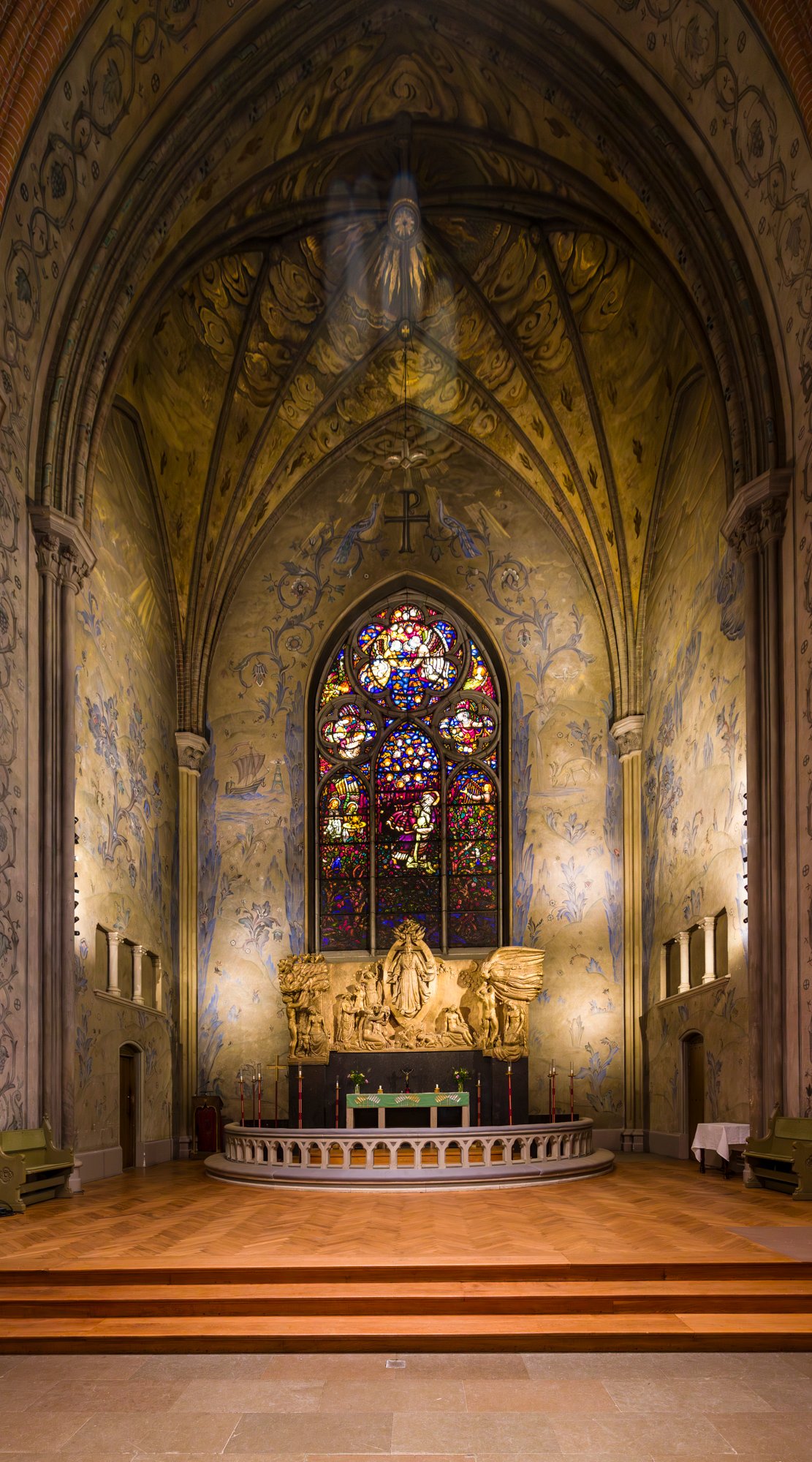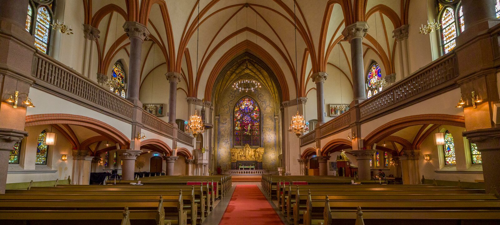 2 Oscar's Church (Swedish: Oscarskyrkan) is one of the major churches in Stockholm, Sweden.[1] The three-aisled hall church, which holds 1,200 people, has an 80-metre-high (260 ft) tower in the south-western part of the building. Oscar's Church is located in the south-eastern part of Östermalm, where Storgatan and Narvavägen meet, near the Swedish History Museum. Narvavägen is together with the nearby Strandvägen—from which the church is also visible—one of the city's main boulevards, lined with several residential palaces.