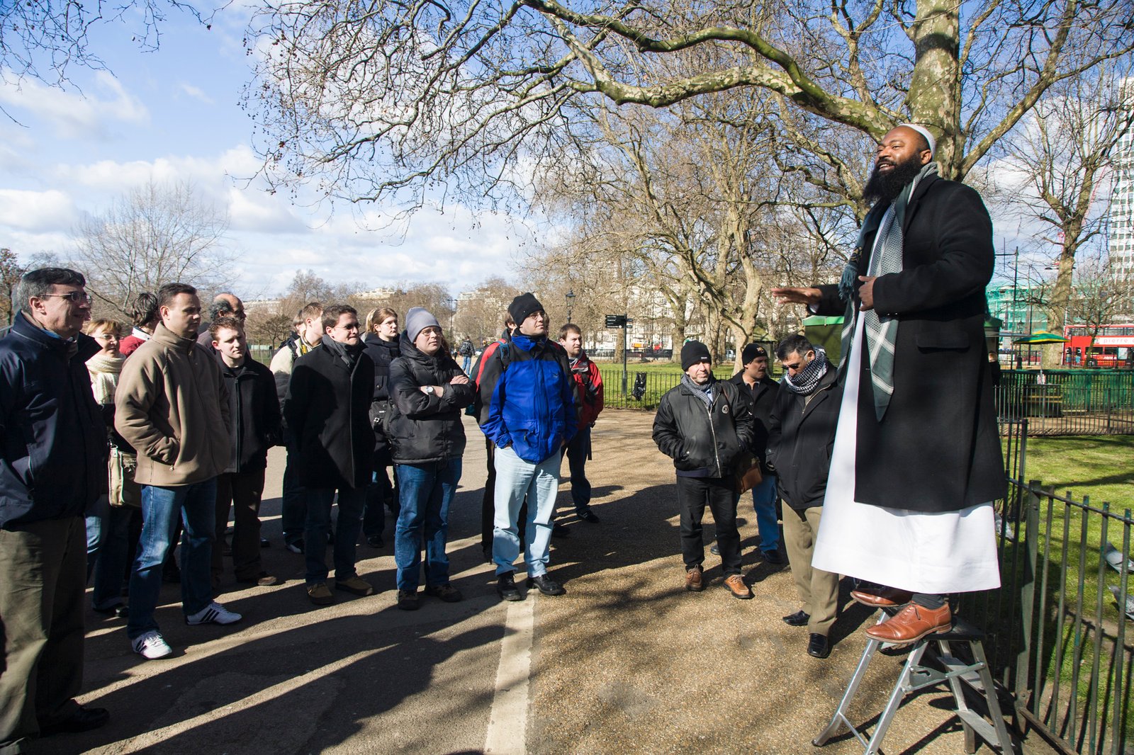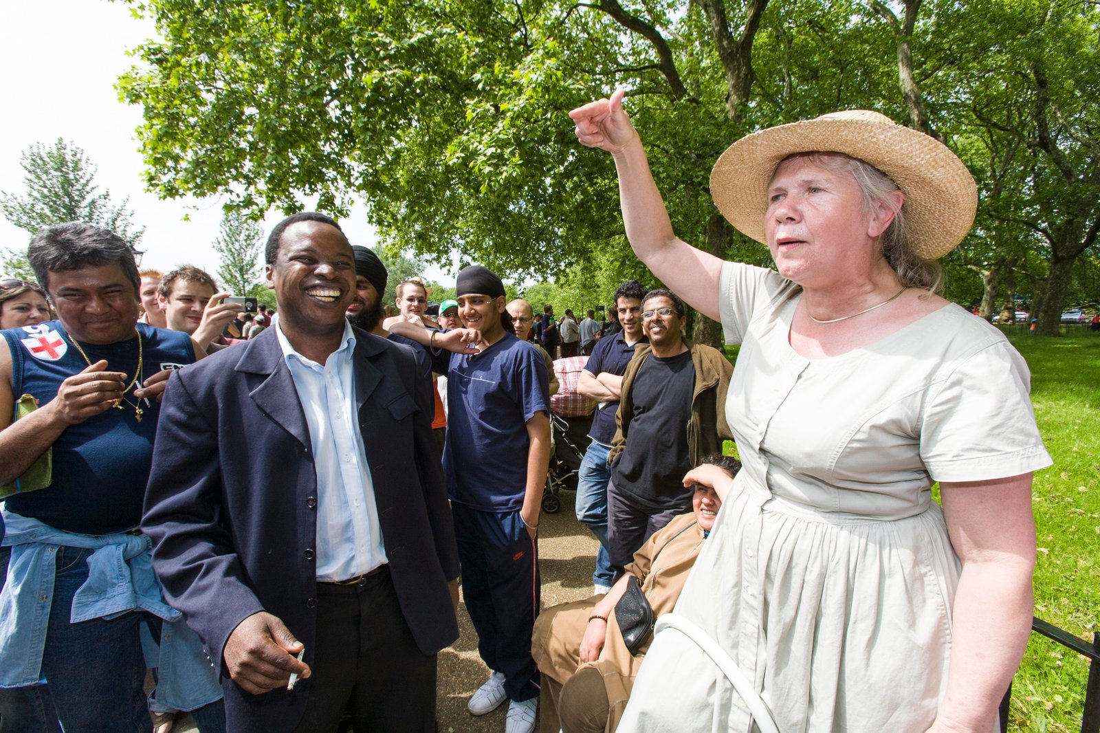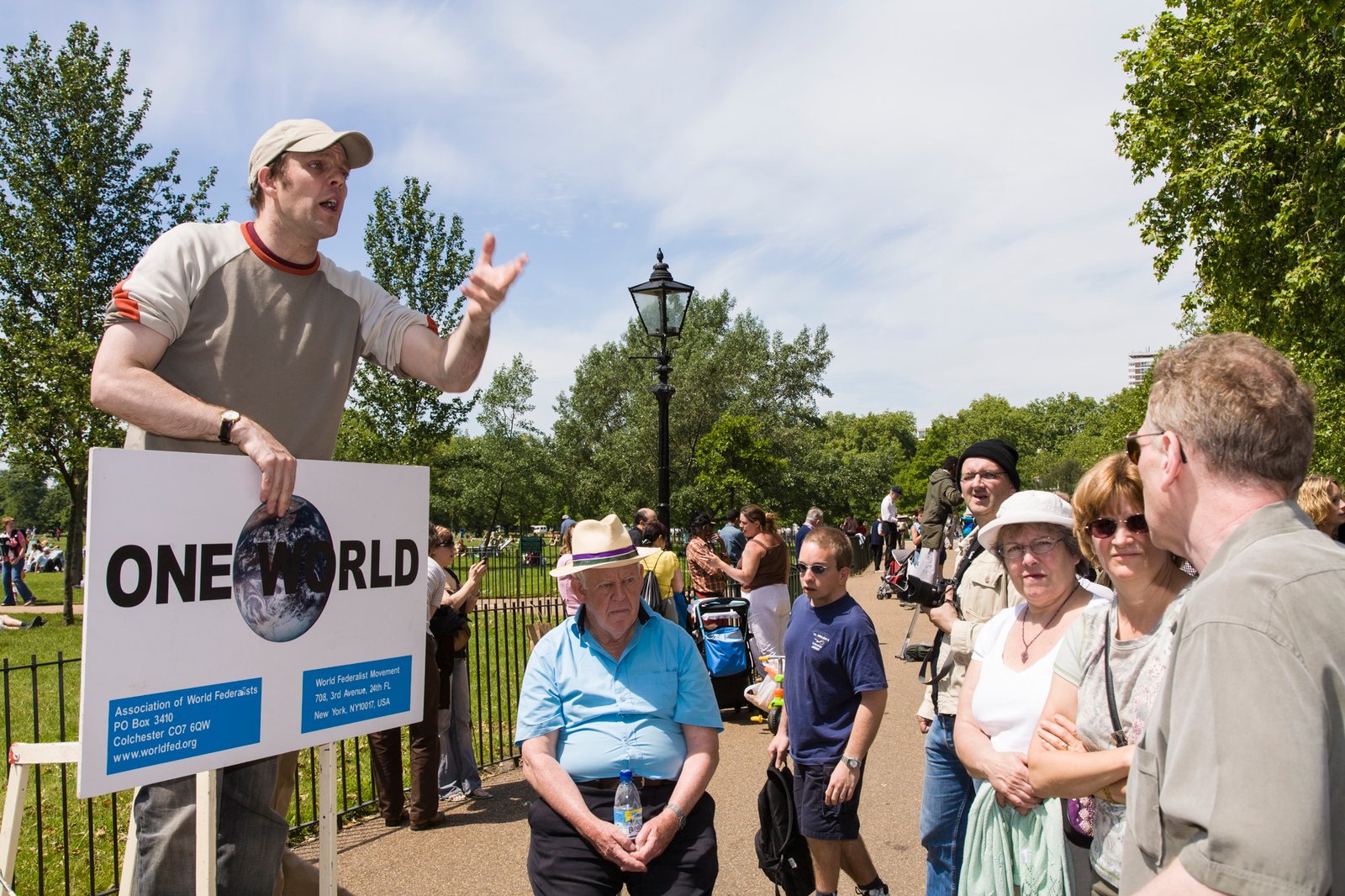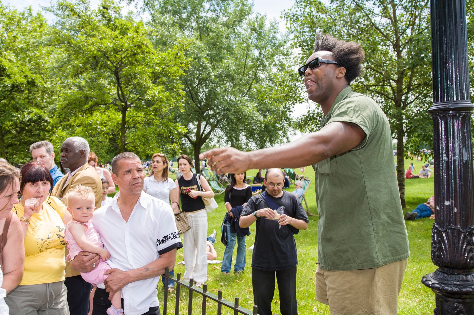 12 Speakers Corner, London, England. Speakers' Corner is an area where open-air public speaking, debate and discussion are allowed. The original and most noted is in the north-east corner of Hyde Park in London, United Kingdom. Speakers there may speak on any subject, as long as the police consider their speeches lawful, although this right is not restricted to Speakers' Corner only. Contrary to popular belief, there is no immunity from the law, nor are any subjects proscribed, but in practice the police tend to be tolerant and therefore intervene only when they receive a complaint or if they hear profanity.