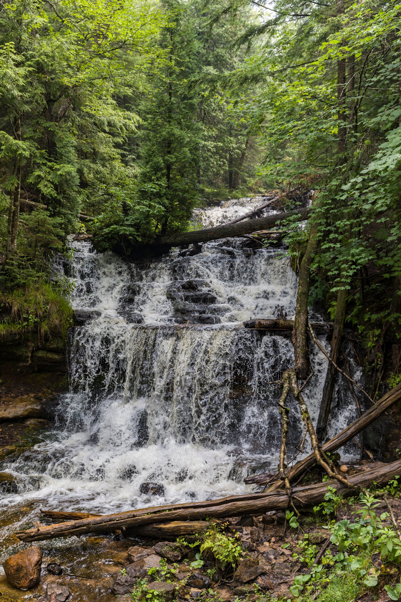 7 Wagner Falls is a waterfall on Wagner Creek near Munising, in Alger County, Upper Michigan. They are in the Wagner Falls Scenic Site, a Michigan State Park of the Michigan Department of Natural Resources.